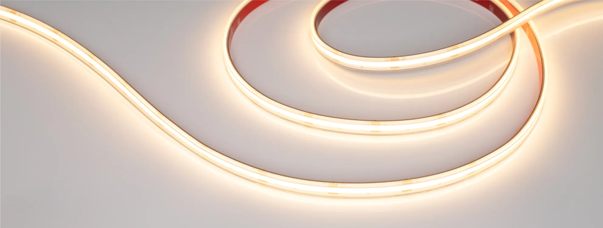 Наполните пространство теплым качественным освещением. Светодиодные ленты COB серии X420 PS — это идеальные линии света без применения рассеивающих экранов и равномерное свечение по всей длине при подключении до 15 м с одной стороны. Бескорпусные ленты применяются для декоративной подсветки МОП в больших коммерческих, офисных и жилых помещениях, а степень пылевлагозащиты IP67 обеспечивает отличную защиту от влаги и внешних воздействий.