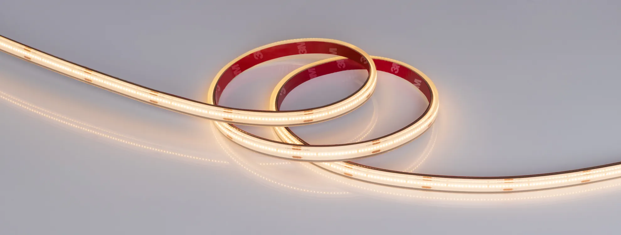 Благодаря светодиодам CSP лента образует равномерное свечение без видимых точек светодиодов.