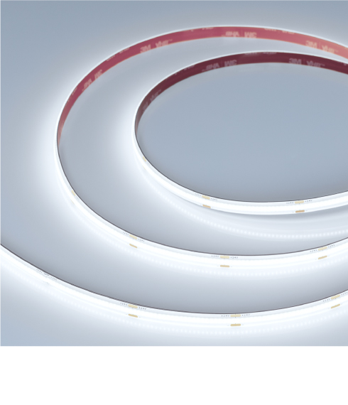 Бескорпусные COB ленты, серия X480. Тип светодиодов CSP (X), 480 светодиодов на 1 метр. Тип герметизации IP65 (SE - силиконове покрытие). Предназначена для декоративной подсветки интерьера, оформления рекламы, витрин. Эффект сплошной идеальной линии света без применения рассеивающих экранов.