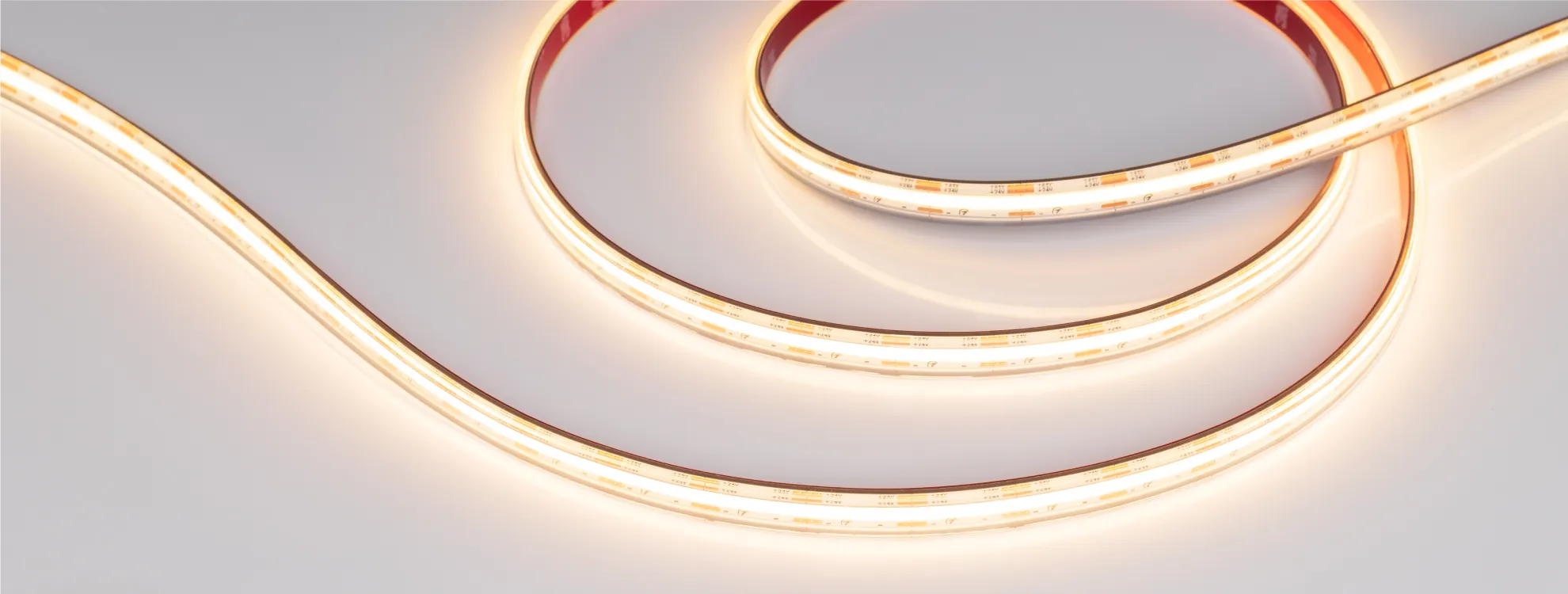 Уютное, качественное освещение для вашего пространства. Серия X560 светодиодных лент COB PS — это равномерное свечение по всей длине без применения рассеивающих экранов и подключение до 10 м с одной стороны. Ленты обеспечивают декоративную подсветку МОП в больших коммерческих, офисных и жилых помещениях с гарантированной защитой от влаги и внешних воздействий благодаря высокой степени пылевлагозащиты (IP67).