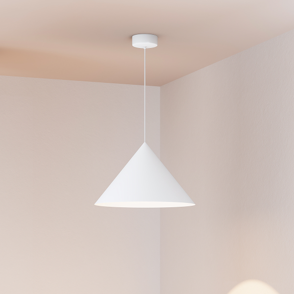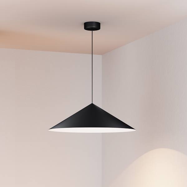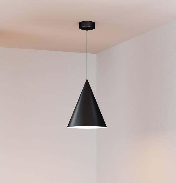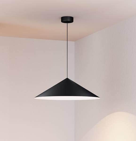 В комплекте со светильником идут два вида чаши — встраиваемая и накладная, поэтому его удобно монтировать в разные типы потолков (бетонные, ГКЛ, натяжные). Подвес длиной 2 м можно регулировать — светильник подойдет для помещений как с низкими, так и с высокими потолками.