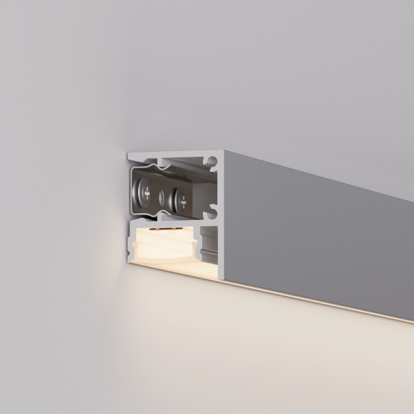 Удобные крепления позволяют легко осуществить монтаж вплотную к стене. Профили представлены в двух цветах: серебристый и черный, а также возможна покраска по RAL.