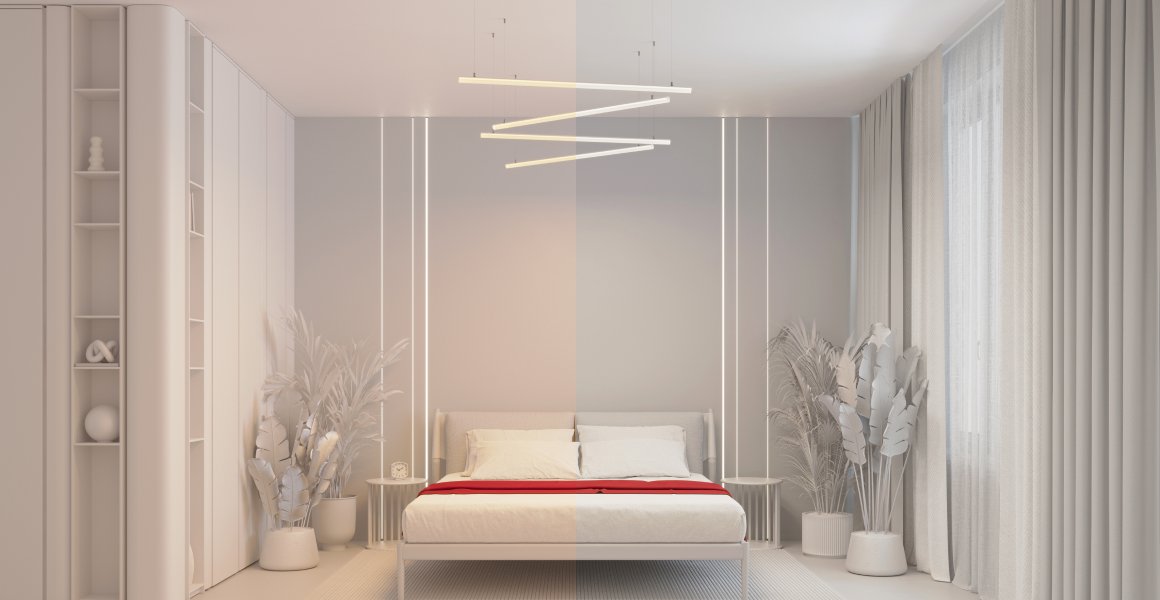 Благодаря изменяемой цветовой температуре светильника и возможности управления по протоколу DALI в помещении можно настраивать различные сценарии биодинамического освещения.