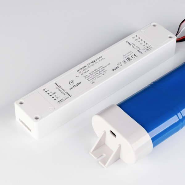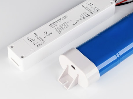 Главная особенность новых моделей блоков питания серии ARJ-EMG — питание непосредственно драйвера светильника, а не его светодиодов. Благодаря этому освещение в аварийном режиме будет таким же ярким, как и при работе от сети 230 В. Время аварийной работы — 1 час.
