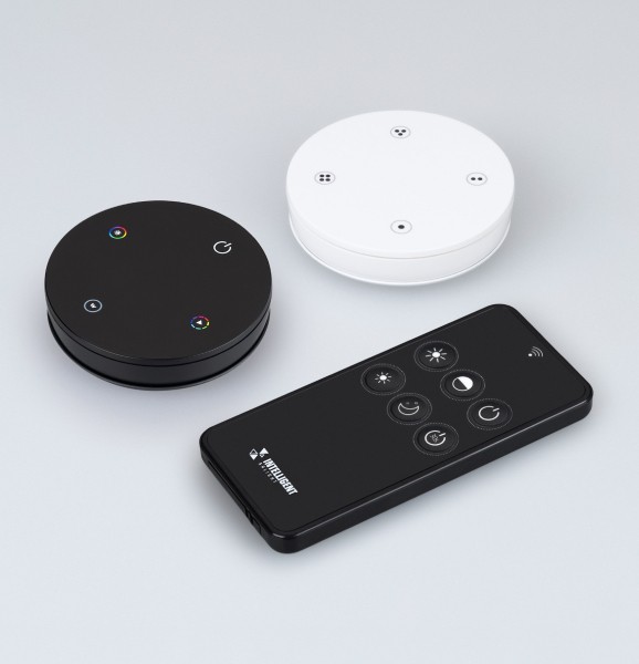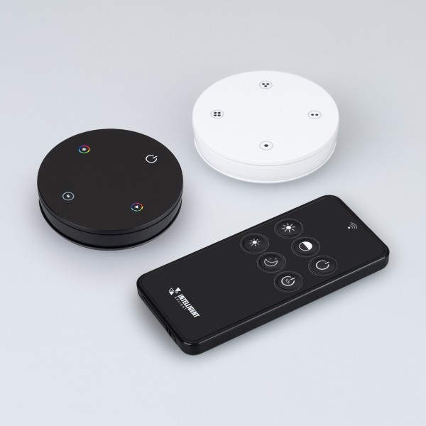 Диммер также совместим с пультами и панелями серии SMART, которые поддерживают управление по радиоканалу 2.4G. Это дает вам возможность управлять освещением с помощью бесконтактных устройств. С помощью интуитивно понятного управления возможно легко регулировать яркость и цветовые эффекты.