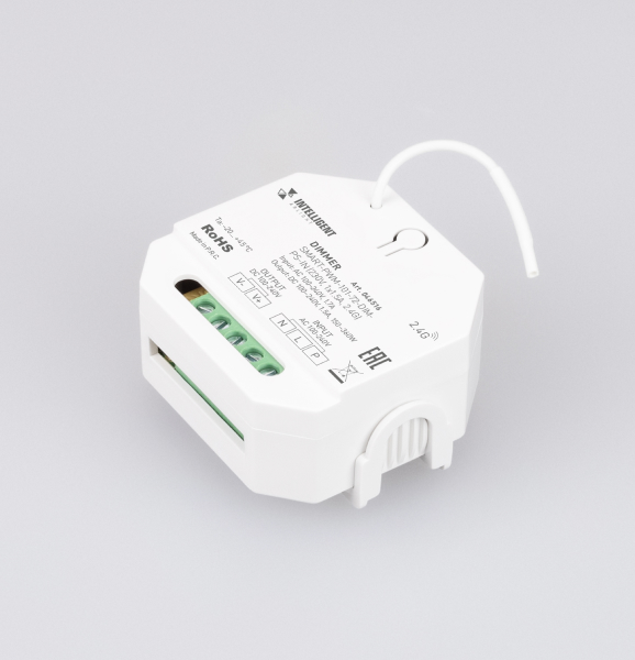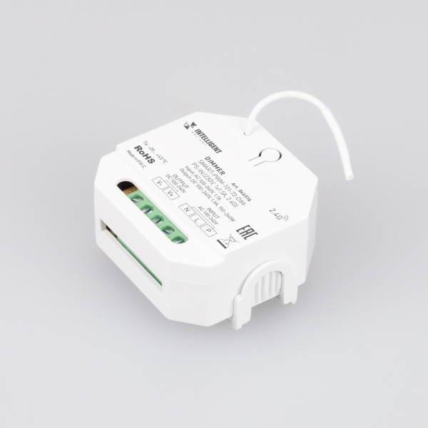 Кроме того, диммер совместим с пультами и панелями управления серии SMART, которые работают по радиоканалу 2.4G.