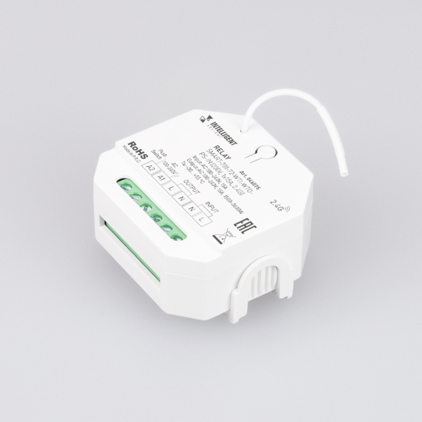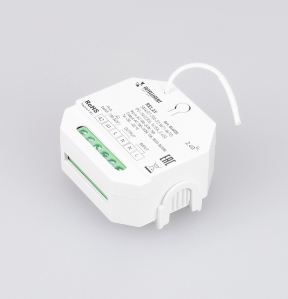 Релейный модуль RF серии SMART — высокоэффективное устройство, разработанное для управления освещением и другими электрическими нагрузками с максимальным током для резистивной нагрузки до 15 А. Особенность релейного модуля — возможность монтажа как в стандартную установочную коробку, так и на DIN-рейку.