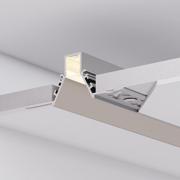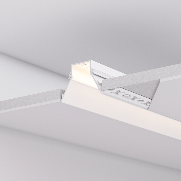 Комфортное рассеянное освещение обеспечивается утопленным экраном и V-образной формой профиля.