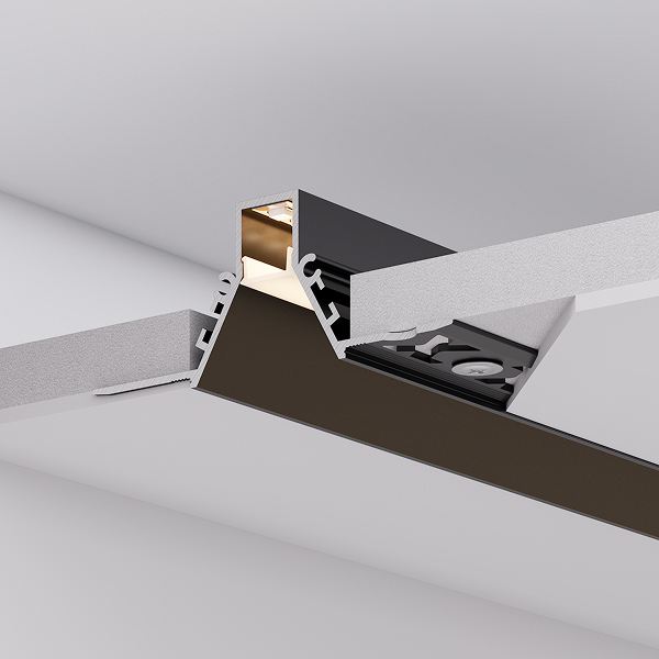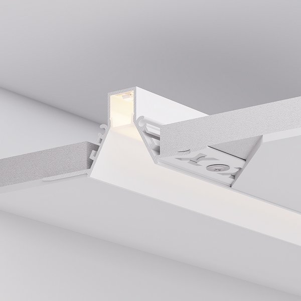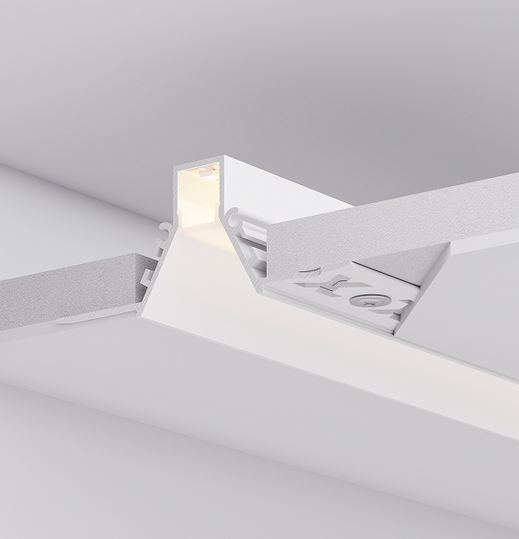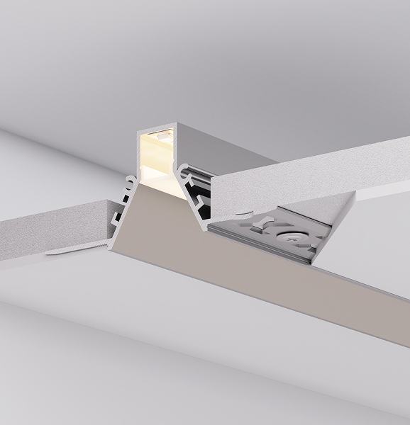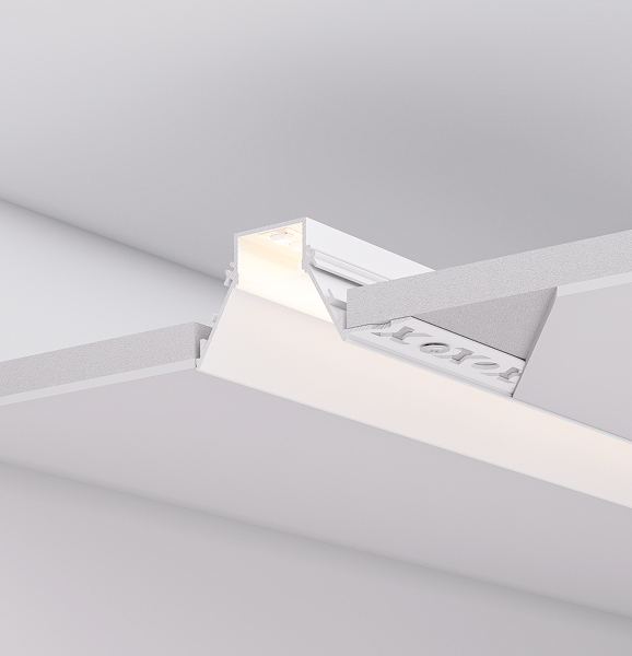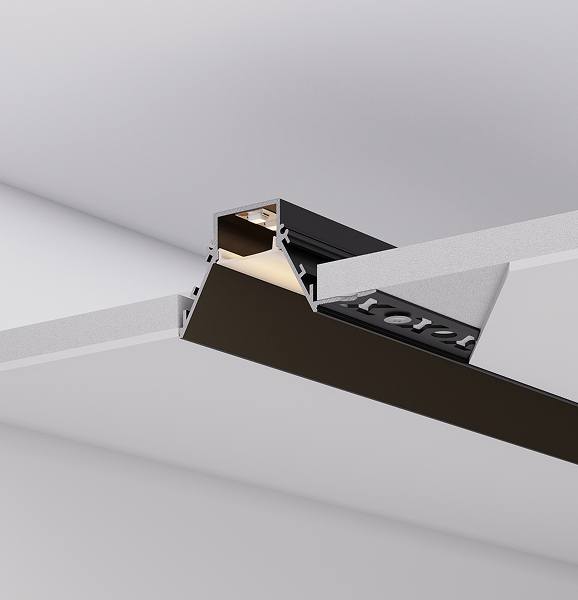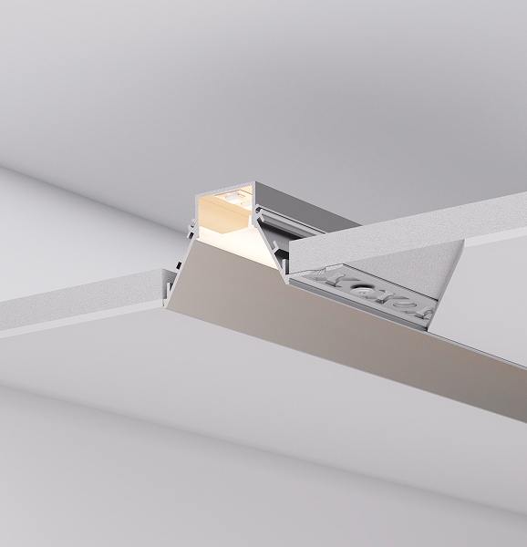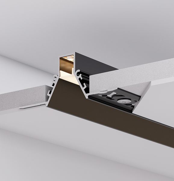 Серия встраиваемых профилей COMFORT V FANTOM со скрытым фланцем под строительную отделку подходит как для основного освещения, так и для контурной подсветки, совмещая непревзойденный стиль и функциональность.