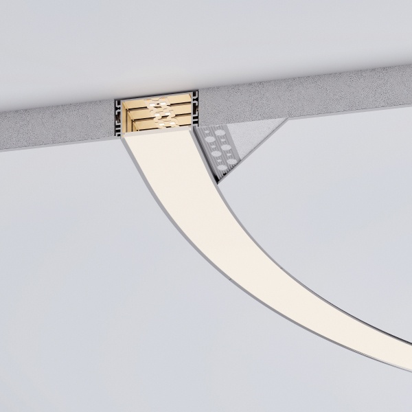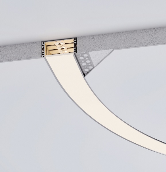 Серия гибких алюминиевых профилей FANTOM BENT со скрытым фланцем пополнилась новыми моделями с шириной световой линии 49 мм. Данные профили подходят для создания прямых и изогнутых линий света для основного освещения, а также для подсветки плавных поворотов, окружностей и арочных конструкций внутри помещения.