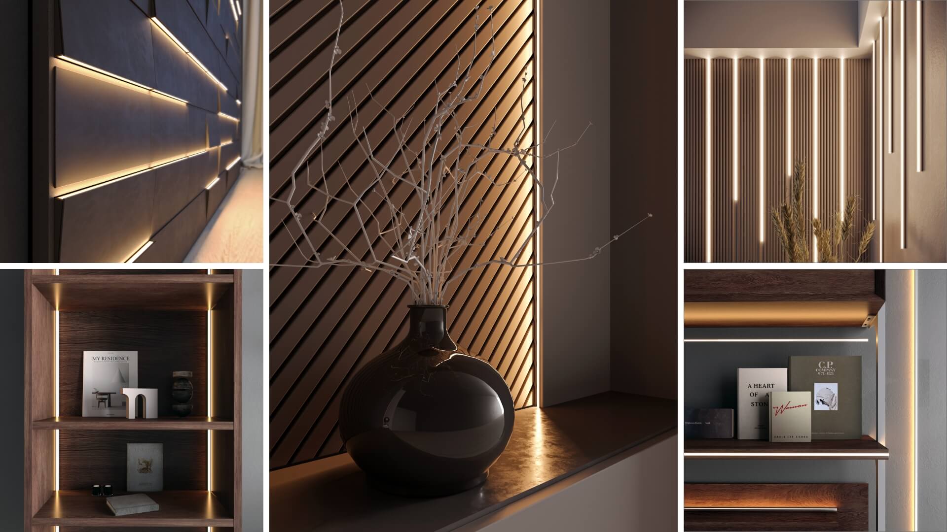 Для создания акцентного освещения, контурной подсветки, декоративного оформления ниш и полок.