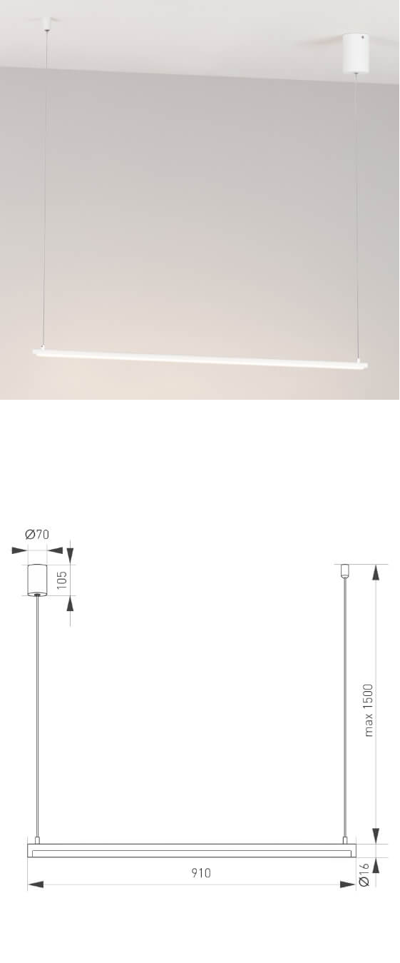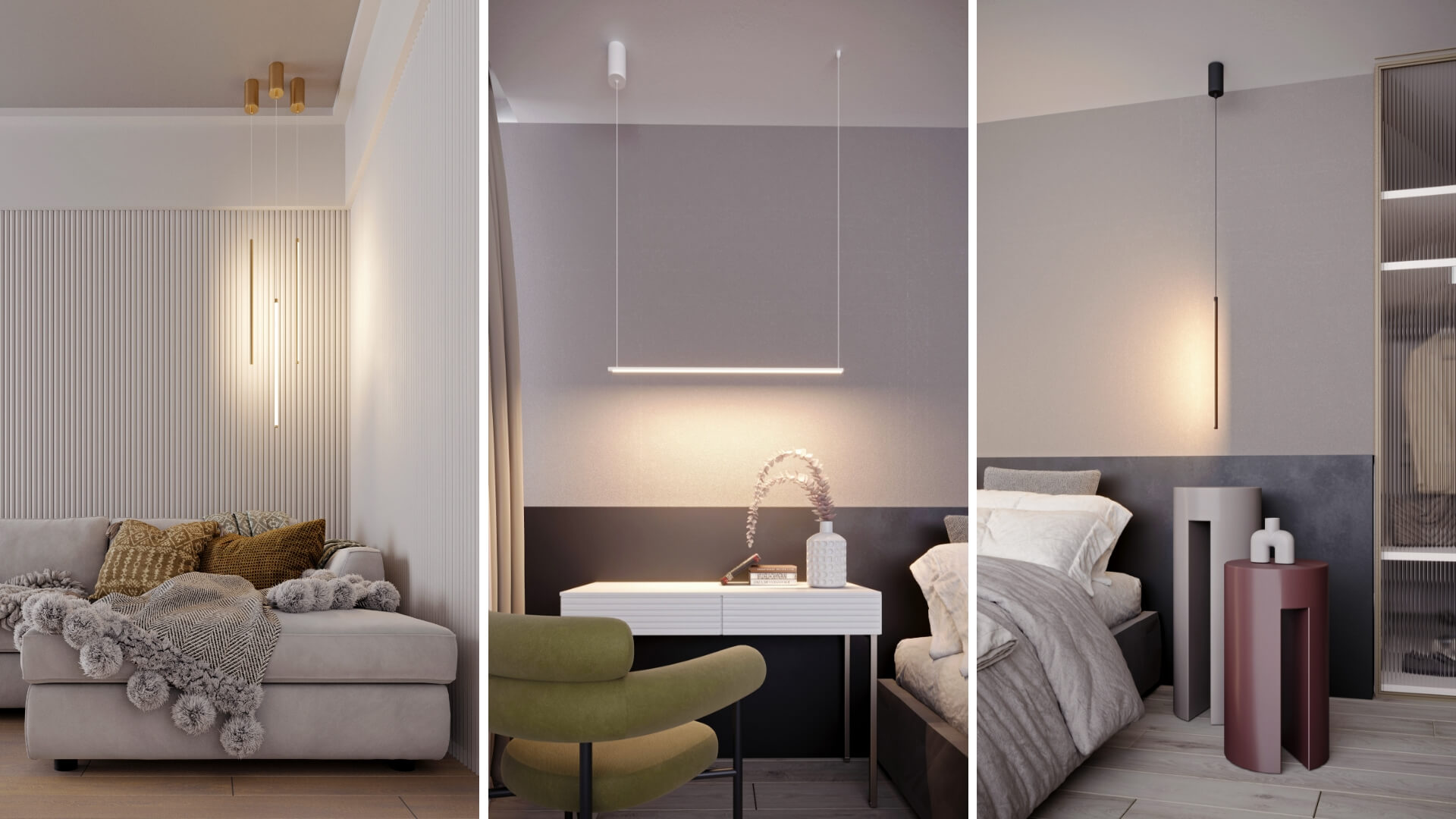 Регулируемая длина подвеса позволит размещать светильники на разной высоте и подстраивать под высоту потолков.