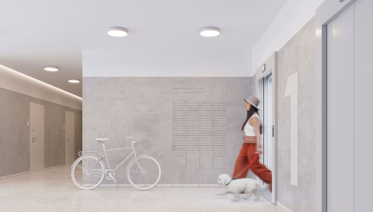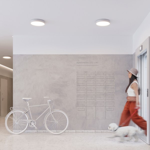 Освещение холла, офиса, МОП или террасы — светильник FLOWER в лаконичном влагозащищенном корпусе подойдет как для жилых и коммерческих, так и для промышленных помещений.