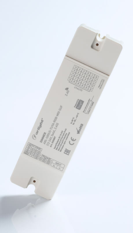 Пульт ARL-SIRIUS-MULTI белого цвета предназначен для DIM- и MIX-управления источниками света. Эргономичный дизайн, матовое сенсорное кольцо управления, высокое качество используемых материалов и компактные габаритные размеры делают эксплуатацию пульта приятной и максимально комфортной.