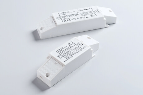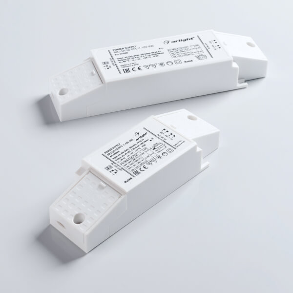 Мультитоковые блоки питания серии ARJ-SP-INS с управлением 1–10 В подойдут как для сборки новых диммируемых светильников, так и в качестве замены штатного драйвера в уже существующих. Благодаря компактным размерам и широкому диапазону выходных токов блоки питания данной линейки могут применяться во многих сериях светильников.