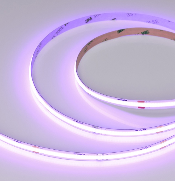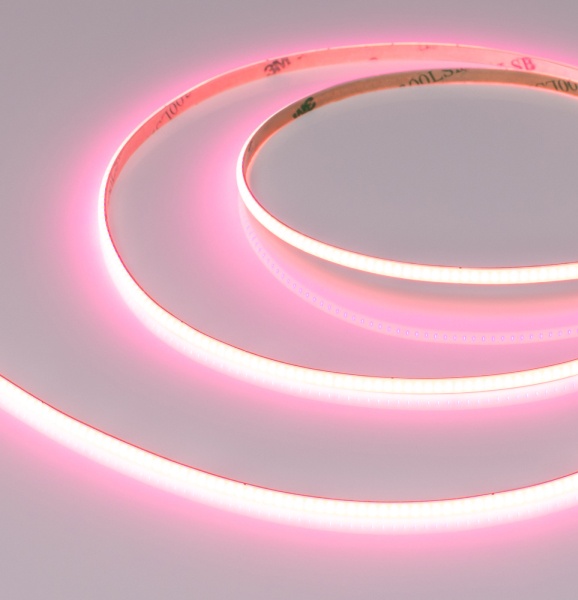 Главная особенность COB-лент — равномерное свечение без видимых точек светодиодов. В сочетании с необычными цветами свечения — небесно-голубым, пурпурно-розовым, бирюзовым и др. — новинки становятся отличным выбором для декоративной подсветки.