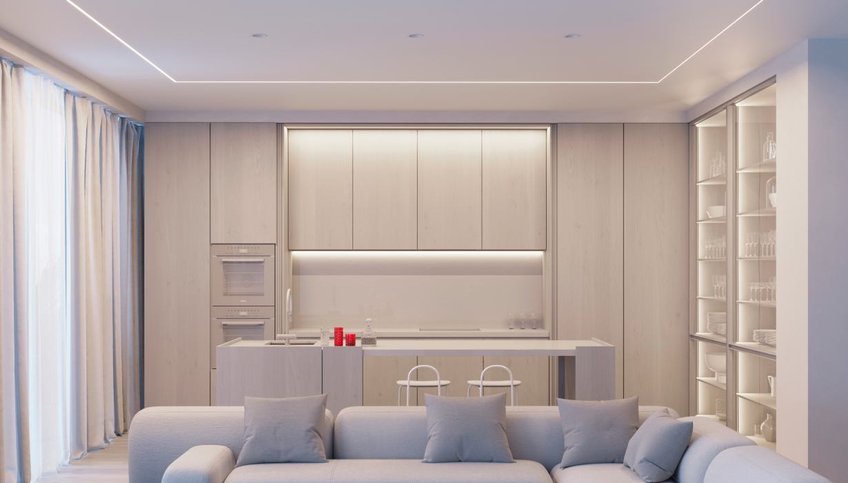 С профилями LINIA FANTOM получится создать декоративные и функциональные линии света, встроенные в поверхность.