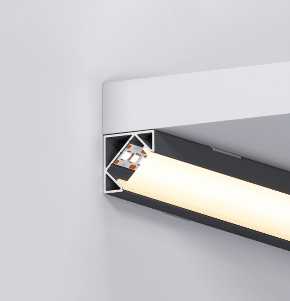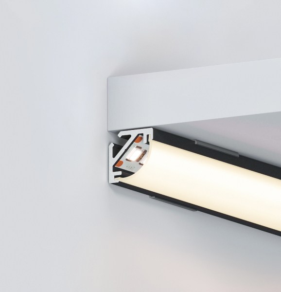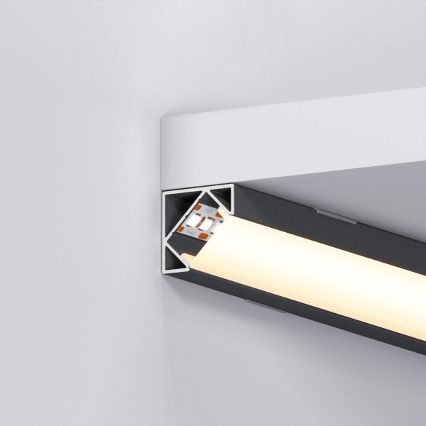 Угловые мини-профили KANT отлично подходят для создания контурной подсветки по углам полок, ниш и других элементов интерьера.