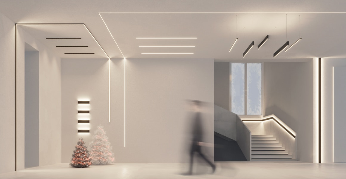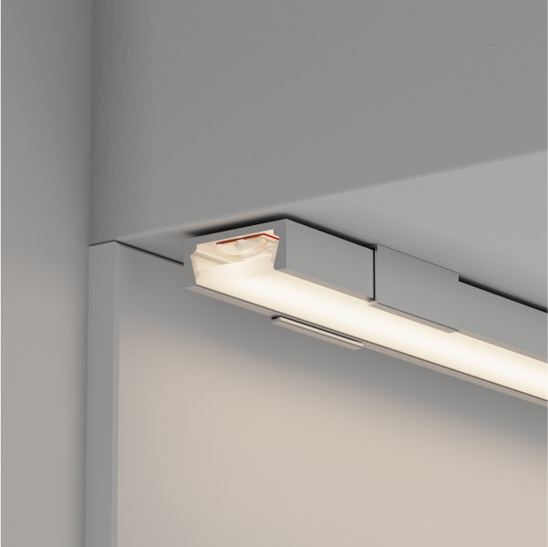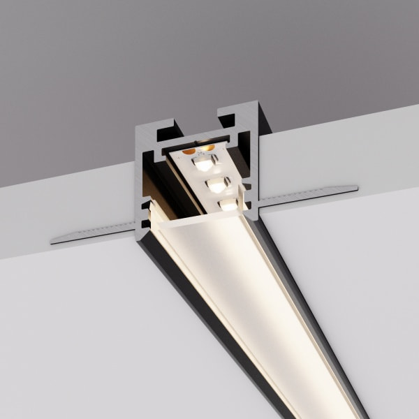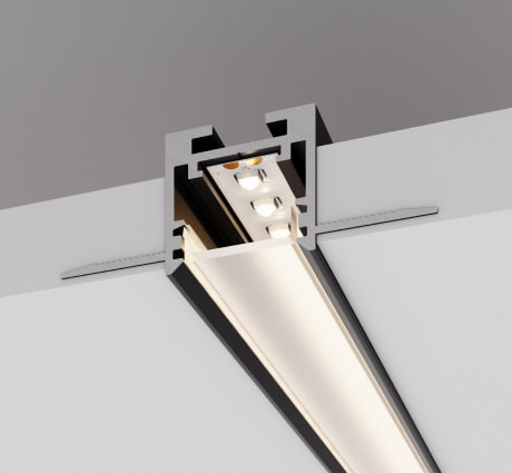 Серия профилей в черном цвете BLACK W20 пополнилась новой моделью — встраиваемым профилем со скрытым фланцем. С его помощью возможно создание аккуратных линий света без видимых частей алюминия на потолке или стенах.