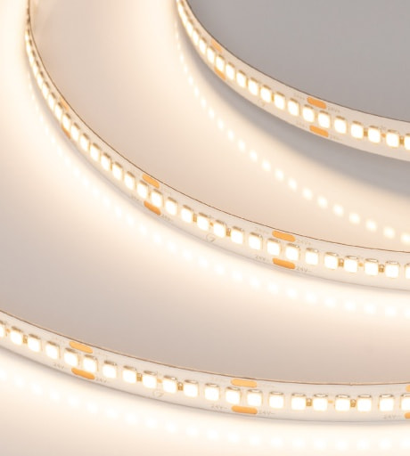Светодиодные ленты RT A128 и A240 отличают высокая световая эффективность и равномерное свечение, что делает ленты идеальным решением для подсветки и освещения поверхностей, обладающих большой площадью.