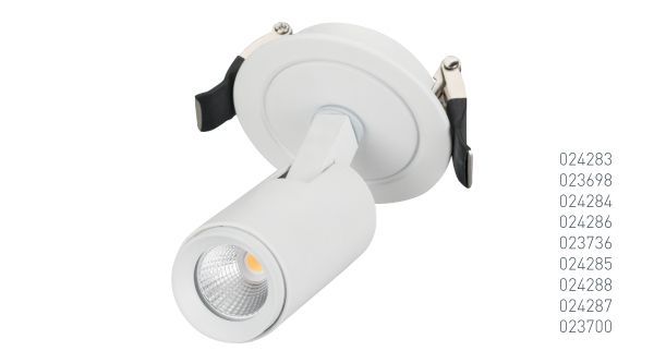 Светильники серии LUMOS имеют встраиваемый способ установки. Угол светового потока у светильников мощностью 5 Вт составляет 38 градусов, мощностью 9 Вт – 25 градусов и 16 Вт – 20 градусов. С помощью поворотного корпуса легко меняется направление света.