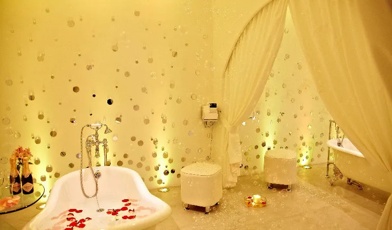 Атмосфера умиротворенности чувствуется в каждом помещении SPA-центра. Настроение передается с помощью света и цвета. Стены и ступени, обрамленные светодиодной лентой, выглядят словно парящими в воздухе. Качественная декоративная подсветка преображает интерьер, позитивно влияет на самочувствие и настраивает гостей на спокойный отдых.