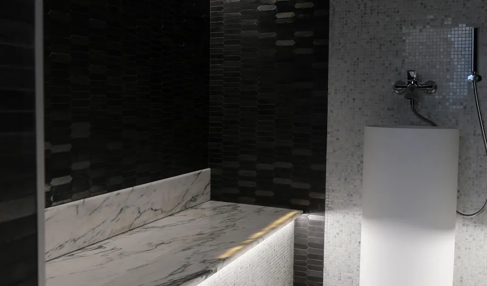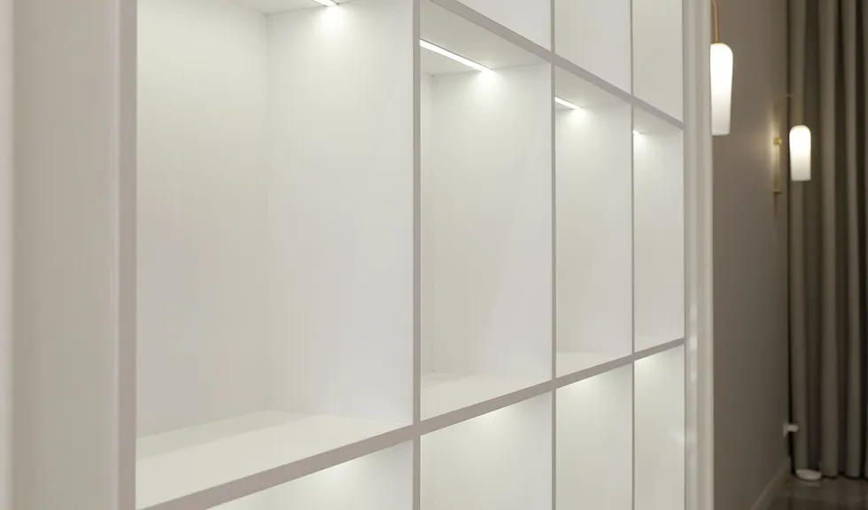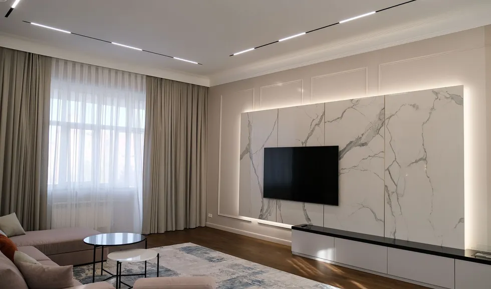 Встроенные треки с магнитными светильниками прямоугольной формы MAG FLAT смотрятся аккуратно и отлично подходят для создания основного и локального освещения. Благодаря рассеивателю на светильнике создается мягкий комфортный свет, который предотвращает блики на мраморной поверхности.