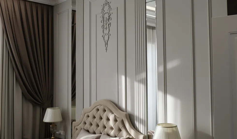 В интерьере частного коттеджа преобладает стиль неоклассицизм. Изящный молдинг, декоративные люстры, обилие мрамора и золотистые элементы фурнитуры грамотно интегрированы в пространство, благодаря чему в коттедже царит ощущение сдержанной роскоши. Однако интерьер остается современным и функциональным, что отчетливо прослеживается в подборе источников освещения.