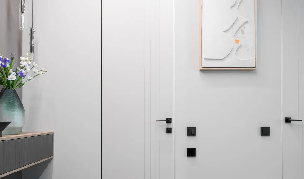Для создания основного освещения в спальне на потолке установлена магнитная трековая система MAG ORIENT. Встроенные светильники FLAT сливаются с линией трека и практически не заметны, позволяя выйти на первый план декоративным элементам.