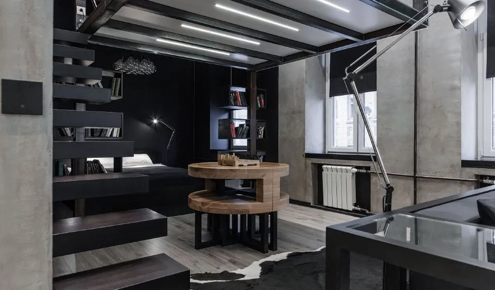 Светодиодное освещение в квартире-студии, выполненной в стиле "Баухауз".