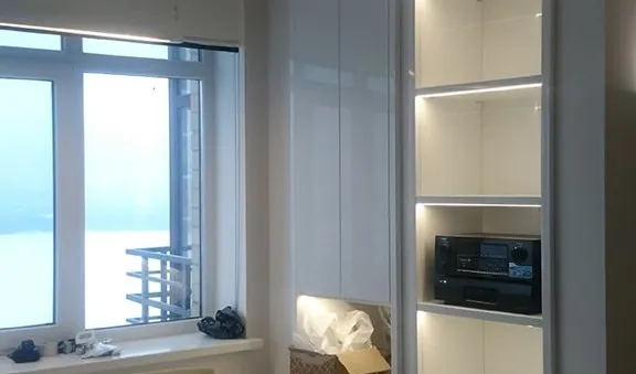 Подсветка полок шкафа - одновременно декоративная и функциональная. Она способна выделить отдельные предметы, например, сувениры, стоящие на полках, световым акцентом. И в то же время она поможет быстрее найти нужный предмет, ведь обычно света в глубине полок недостаточно.