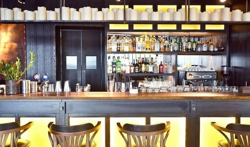 Была установлена светодиодная подсветка барной стойки, витражей, полок, ниш, витрин и других деталей интерьера.