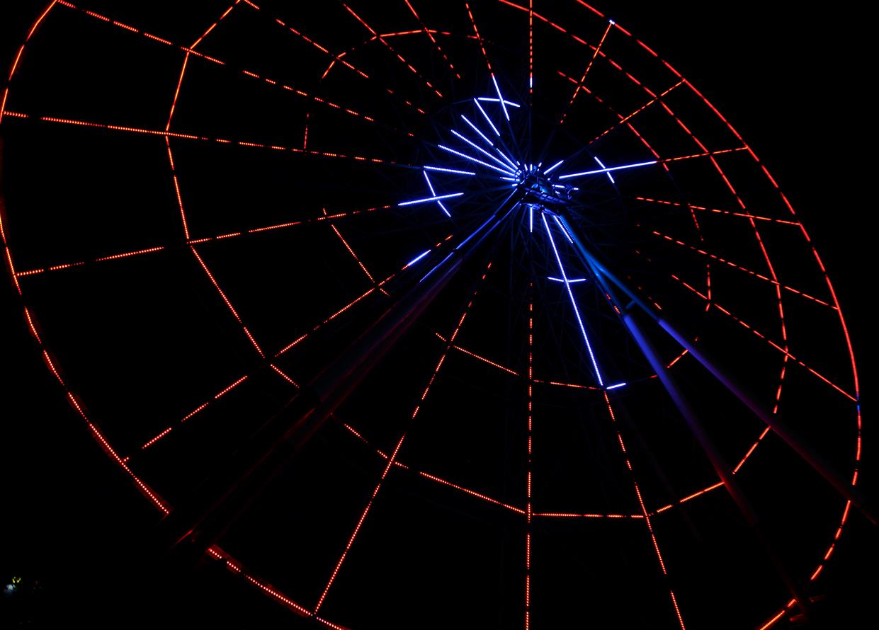 Светодиодное оборудование arlight® использовано в системе динамической светодиодной подсветки колеса обозрения в парке Кырлай города Казань. Для создания подсветки было применено около 10000 светодиодных флэш-модулей arlight® ARL-D30-3LED-2811 RGB 12V. Модули состоят из 3-х RGB светодиодов SMD5050, имеют встроенный чип управления WS2811 и оснащены прозрачным экраном. Модули герметичны и обладают степенью защиты от влаги и пыли IP67.