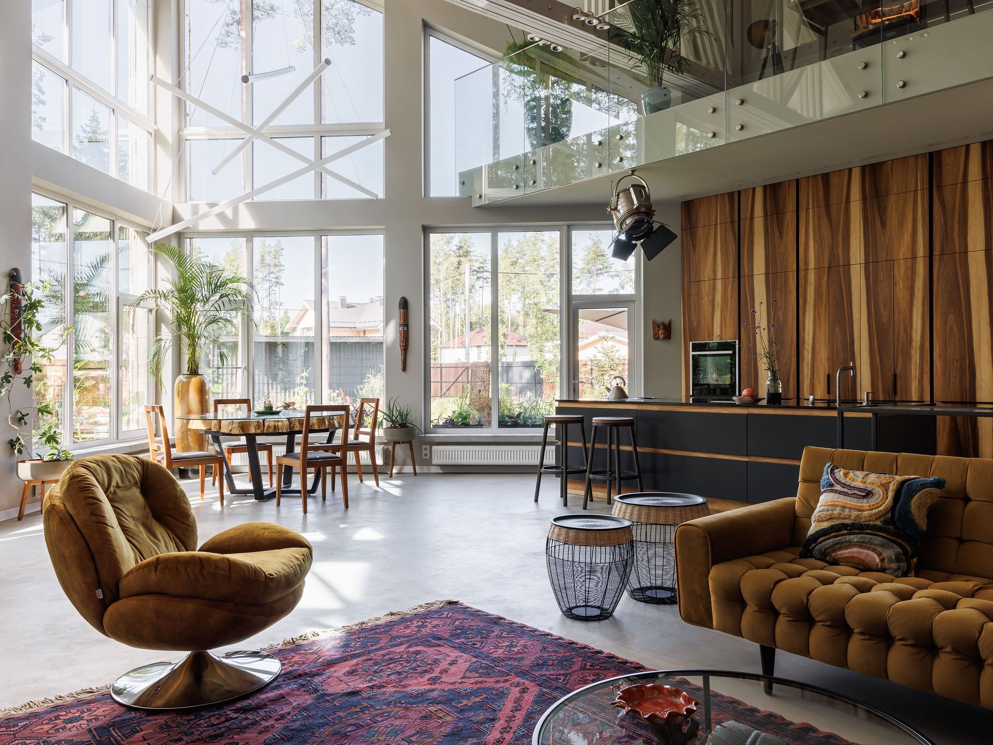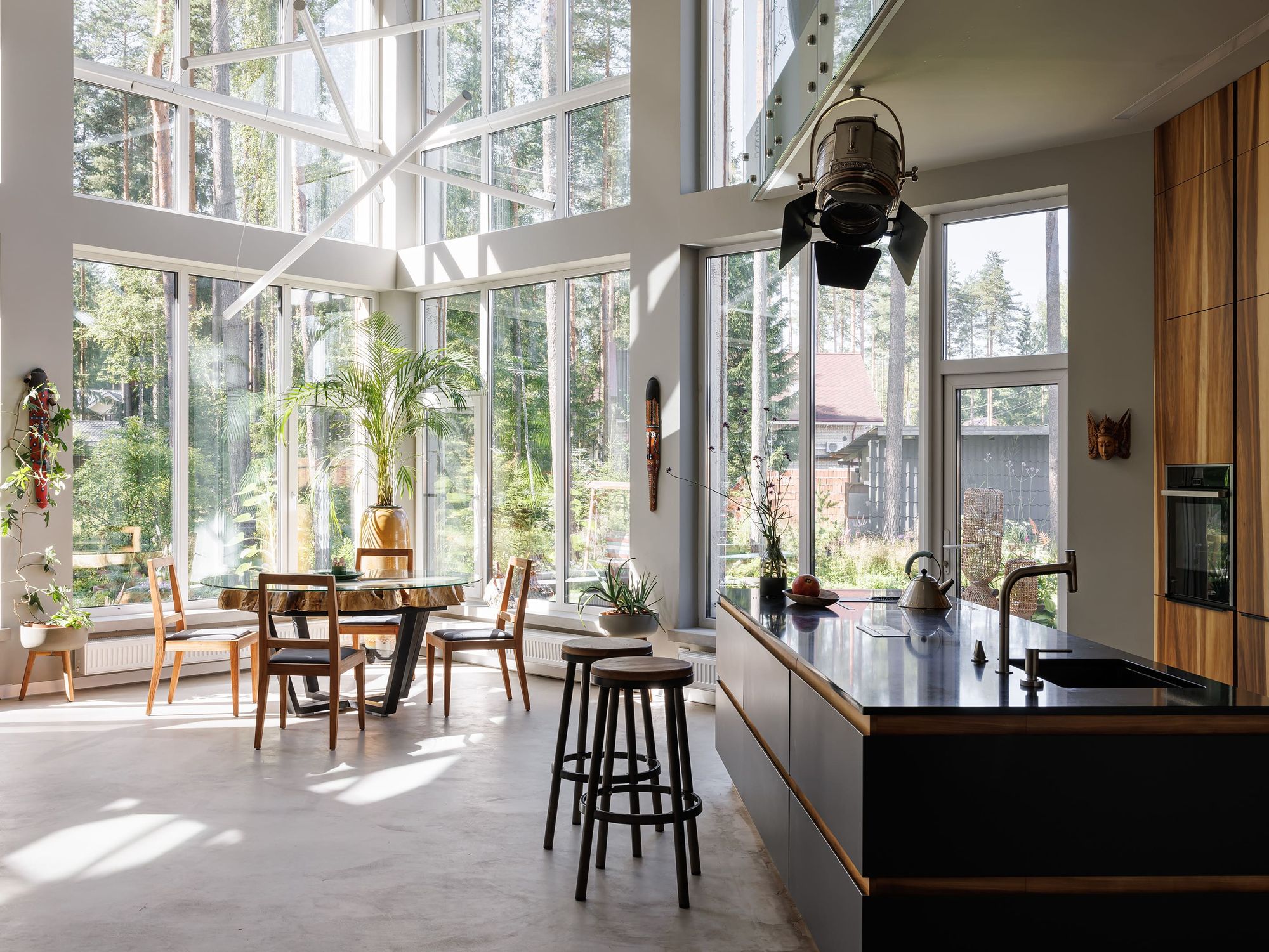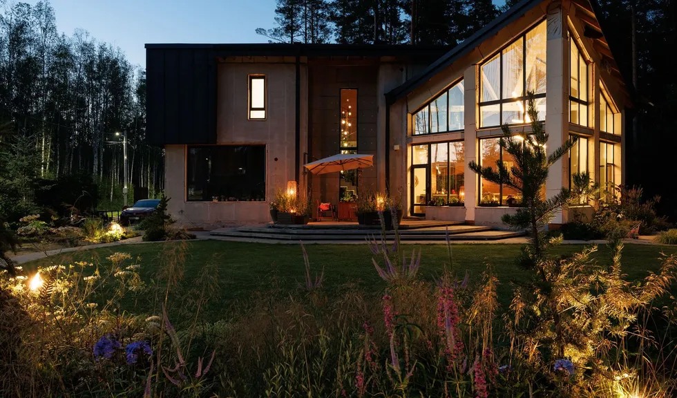 Этот дом стал творческой лабораторией, «местом силы» для реализации концепции «дизайна загородной жизни». Эта концепция объединяет архитектуру, интерьер и ландшафт в единое гармоничное пространство.
