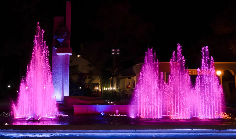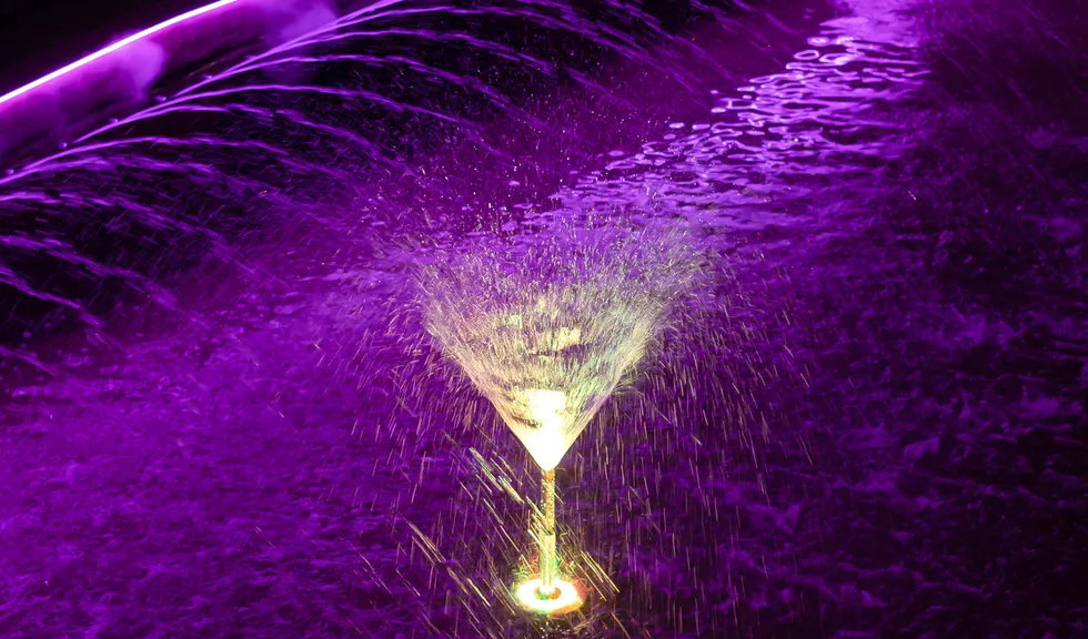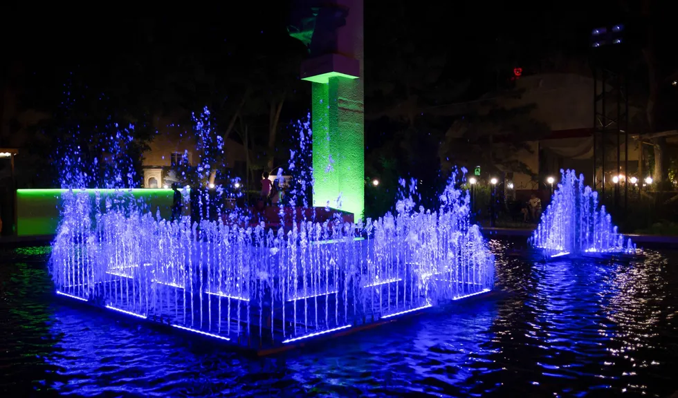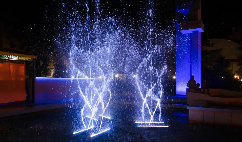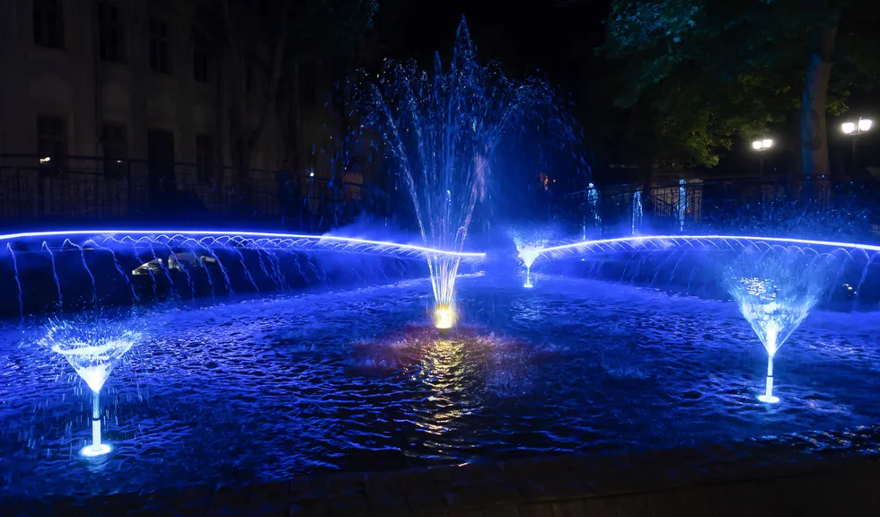 Грандиозный светомузыкальный проект реализован с помощью герметичных RGB-лент лент с высокой степенью пылевлагозащиты IP67. Фонтан оснащен полноценной системой освещения и озвучивания, которая позволяет воспроизводить эффектные цветомузыкальные фонтанные паттерны. Управление цветом свечения и динамическими сценариями осуществляется с помощью контроллера. Система управления основана на синхронизации с музыкой по темпу и стилю. Все фигуры фонтана укомплектованы сухими насосами, влагозащищенной системой управления и световой системой с безопасным напряжением 24 В..