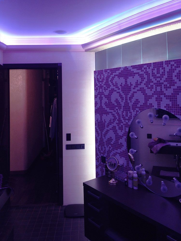 Задачей данного проекта являлась замена старой неоновой подсветки на современную светодиодную и многоцветную. Замена была произведена в спальной и ванной комнатах.