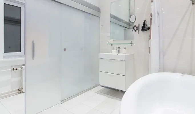 Из стекла с изменяемой прозрачностью были сделаны и стенки ванной комнаты, а в её освещении были применены светодиодные светильники arlight®.