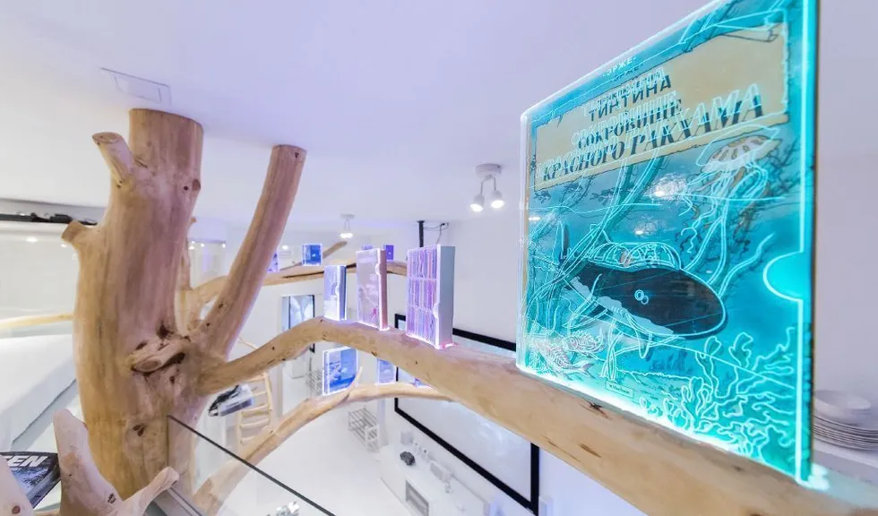 В данном проекте было широко использовано светодиодное освещение и подсветка на основе оборудования arlight®. На ветвях деревьев расположились плексигласовые ниши для книг, подсвеченные светодиодной лентой arlight® разных цветов.