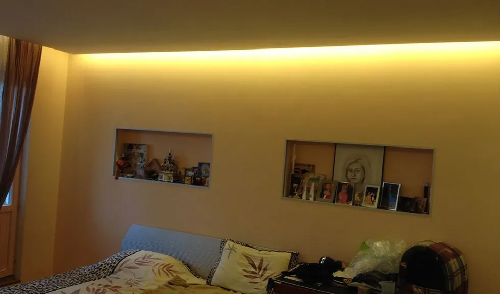 Потолочные ниши в этой квартире были подсвечены при помощи люминесцентных ламп Т8, которые нередко встречаются и сейчас, особенно в офисах. Владельцы квартиры приняли решение заменить этот устаревающий источник света на современный и более экономичный - светодиодную ленту.