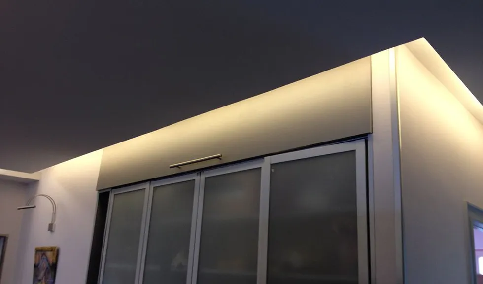 В результате свечение стало равномерным по всей длине, т.к. светодиодные ленты, в отличие от ламп Т8, расположены вплотную друг к другу, благодаря чему исчезли засветы и затенённые участки. Ну а самое главное - светодиодная лента Arlight позволила забыть о всем знакомом неприятном мерцании перегорающих люминесцентных ламп и их замене, которая была особенно неудобна в условиях ограниченного пространства потолочных ниш.