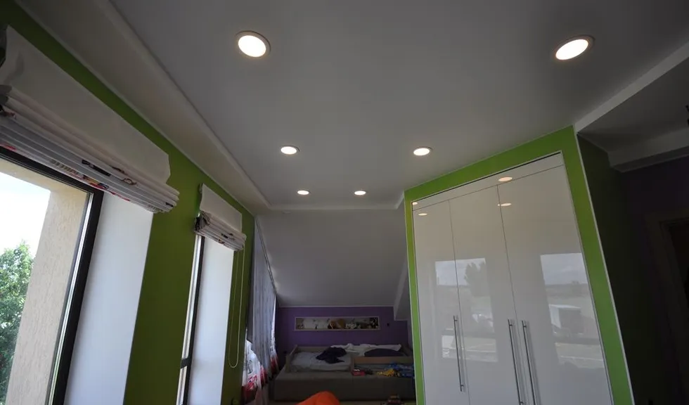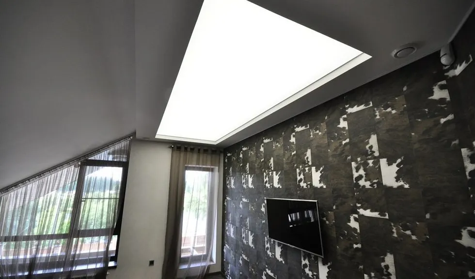 В проекте реализована два варианта освещения. Первый вариант равномерная подсветка натяжного потолка светодиодной лентой