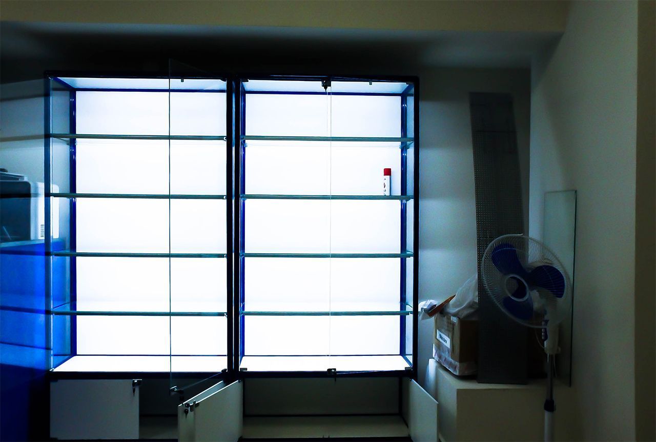 Для организации подсветки в витринах были установлены алюминиевые светодиодные профили, в которые затем смонтированы светодиодные ленты. Такой способ установки скрывает источники света и кабели их питания, поэтому подсветка выглядит более эстетично. К тому же, экран, установленный на профиль и закрывающий ленту, защищает её от попадания пыли, а сам профиль отводит от светодиодов тепло, что положительно сказывается на их сроке службы.