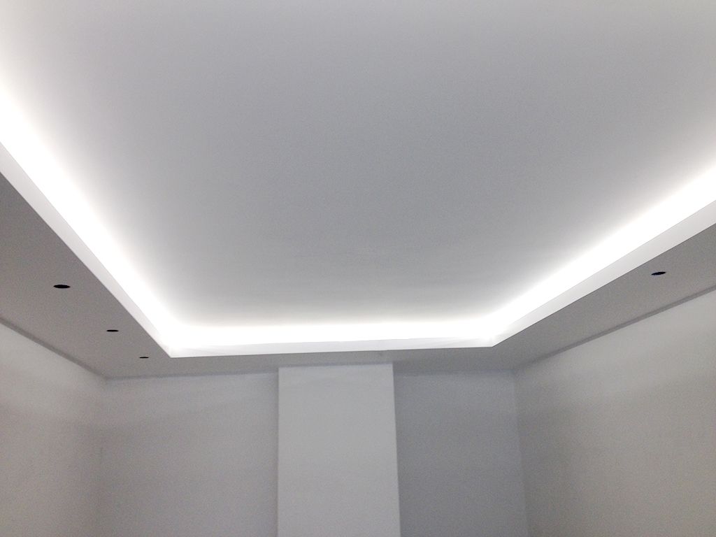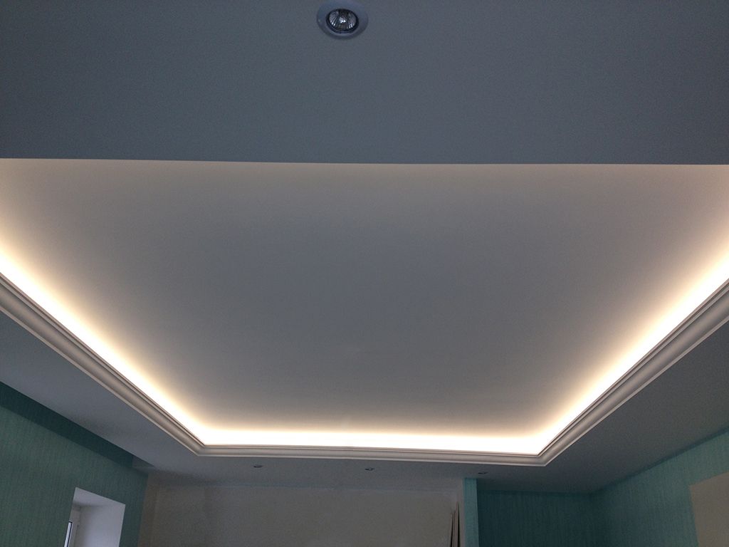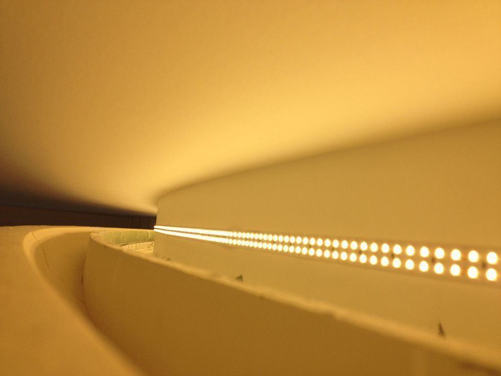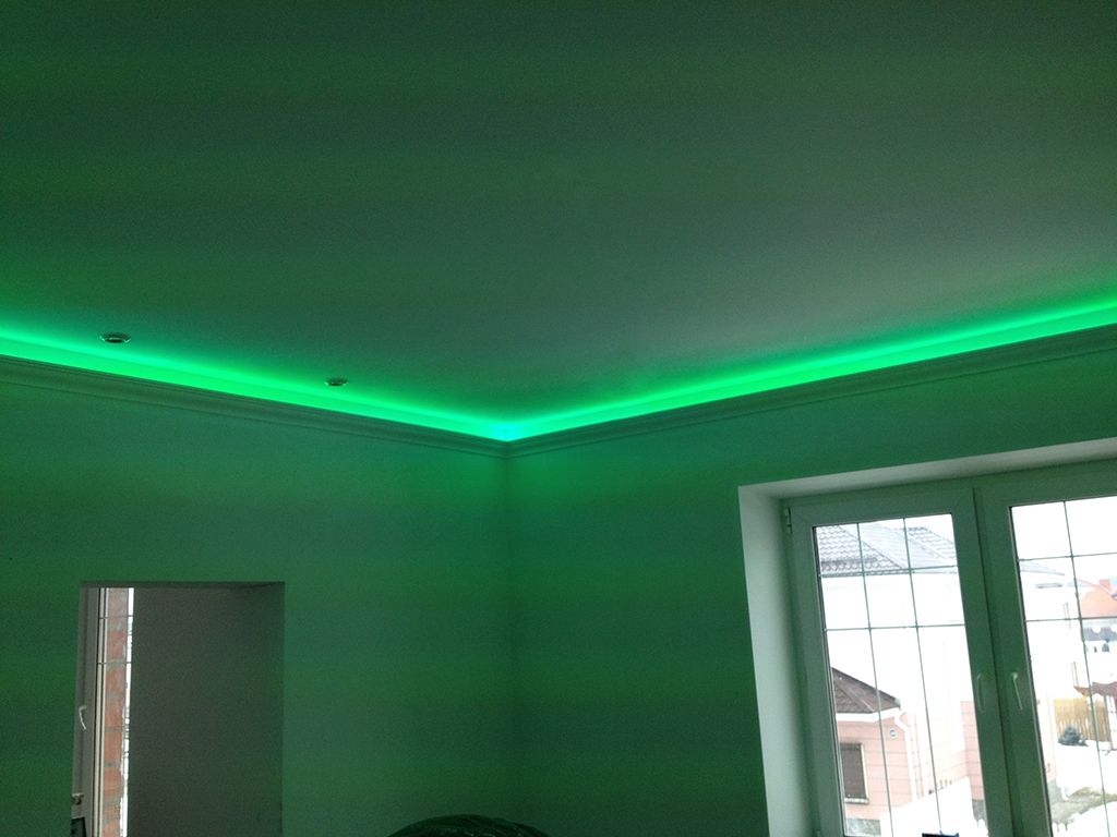 В одном из помещений была использована многоцветная RGB светодиодная лента Arlight, цвет и яркость которой можно выбирать с помощью RGB контроллера. Эта лента была установлена в декоративный карниз из полиуретана.