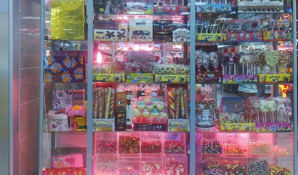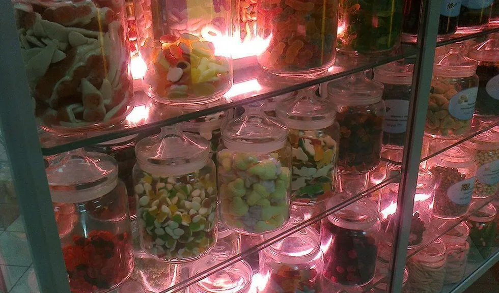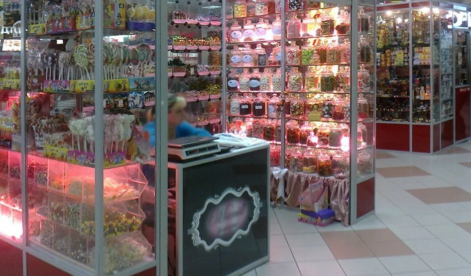 Пройти мимо, не взглянув на такое обилие разнообразных сладостей довольно сложно. Но чтобы магазин точно не остался незамеченным и привлёк дополнительное внимание, была установлена светодиодная подсветка витрин.