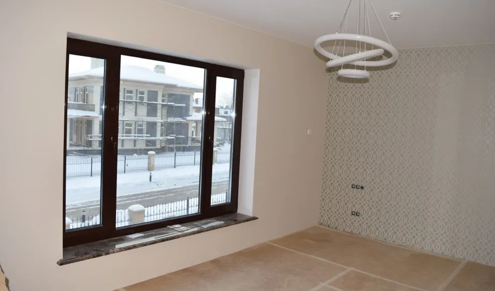 Для освещения в комнатах также использованы светодиодные светильники. В одной из них - светильник, представляющий собой 3 светящихся кольца, зафиксированных на разной высоте и с разным наклоном. В другой были установлены подвесные линейные светильники, собранные из алюминиевых профилей со светодиодными лентами.