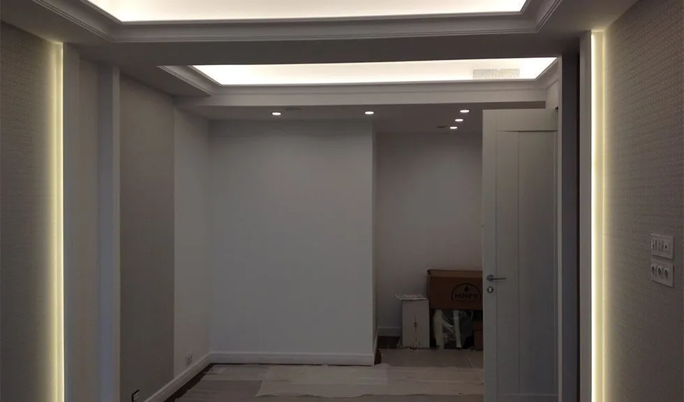 Для большей части подсветки светодиодная лента была установлена в алюминиевые профили arlight® с экранами. Профиль служит для ленты теплоотводом, обеспечивая правильный температурный режим, а значит, продлевая срок её службы. Матовые экраны для профилей рассеивают свечение ленты, делая его еще более равномерным.