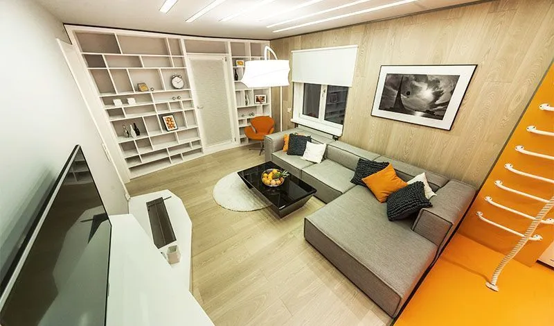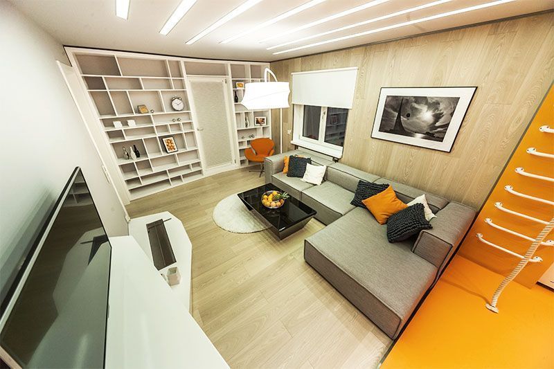 24 февраля 2013 на телеканале "НТВ" вышел в эфир выпуск передачи "Дачный ответ". Дизайнеры разделили большое помещение гостиной в загородном доме на две зоны: для активного времяпрепровождения детей и для комфортного отдыха взрослых, совместив таким образом несовместимое - спорт и спокойный досуг. Объединяющим эти две зоны становится необычный дизайн в стиле "легкого футуризма". Игра объемов в оранжевом цвете, сложная система шведских стенок и игровых тренажеров сочетается с зоной отдыха, изюминкой которой стал биокамин.
