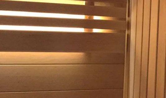 Герметичная светодиодная лента была установлена под двумя уровнями деревянных скамей сауны, их спинках, а также в декоративном витраже. Как и положено, свет в сауне получился мягким и не давящим на глаза, что придаёт ей дополнительный уют и комфорт.