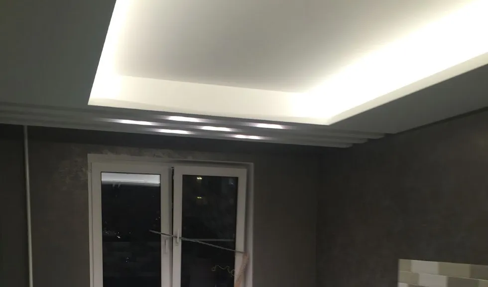Во всех частях квартиры были сделаны многоуровневые потолки из гипсокартона и все они были дополнены светодиодной подсветкой.