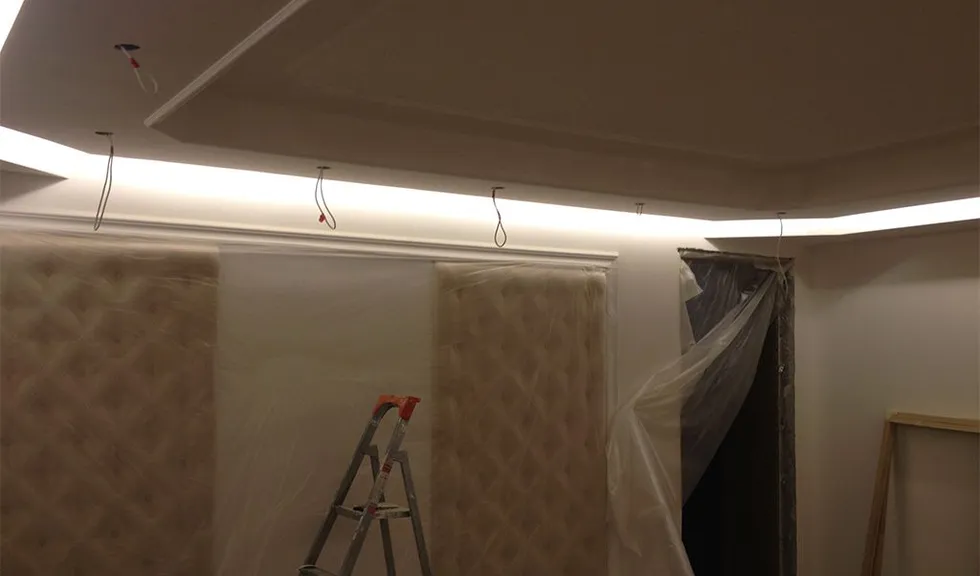 Блоки питания светодиодных лент были скрыты в специально сделанных нишах и лючках, поэтому с обслуживанием блоков трудностей не возникнет. Монтаж подсветки всех помещений был выполнен всего за полдня.